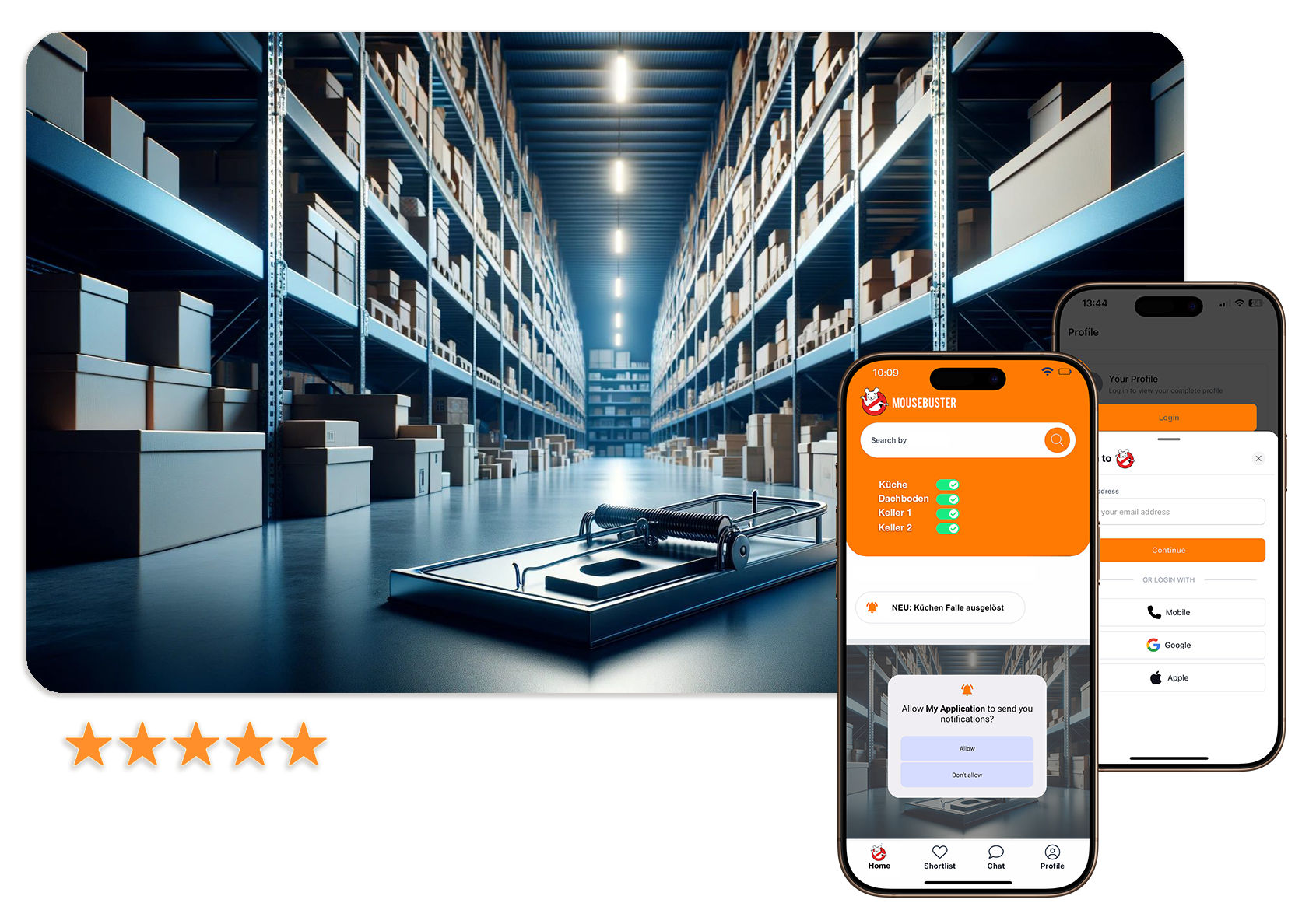 Mousebuster- die Zukunft der Schädlingsbekämpfung! Mit unserem innovativen Fallensystem und der dazugehörigen APP hast Du den Status Deiner Falle jederzeit im Blick. Mit Mousebuster ersparst Du Dir die tägliche Fallenkontrolle, die übernimmt Mousebuster ab sofort 24/7 für Dich! Mousebuster meldet sich bei Dir, sobald die Falle ausgelöst hat. So hast Du einen aufkommenden Befall sofort im Griff und kannst die Ursache beheben bevor sich die Schadnager in deinem Haus etablieren können.